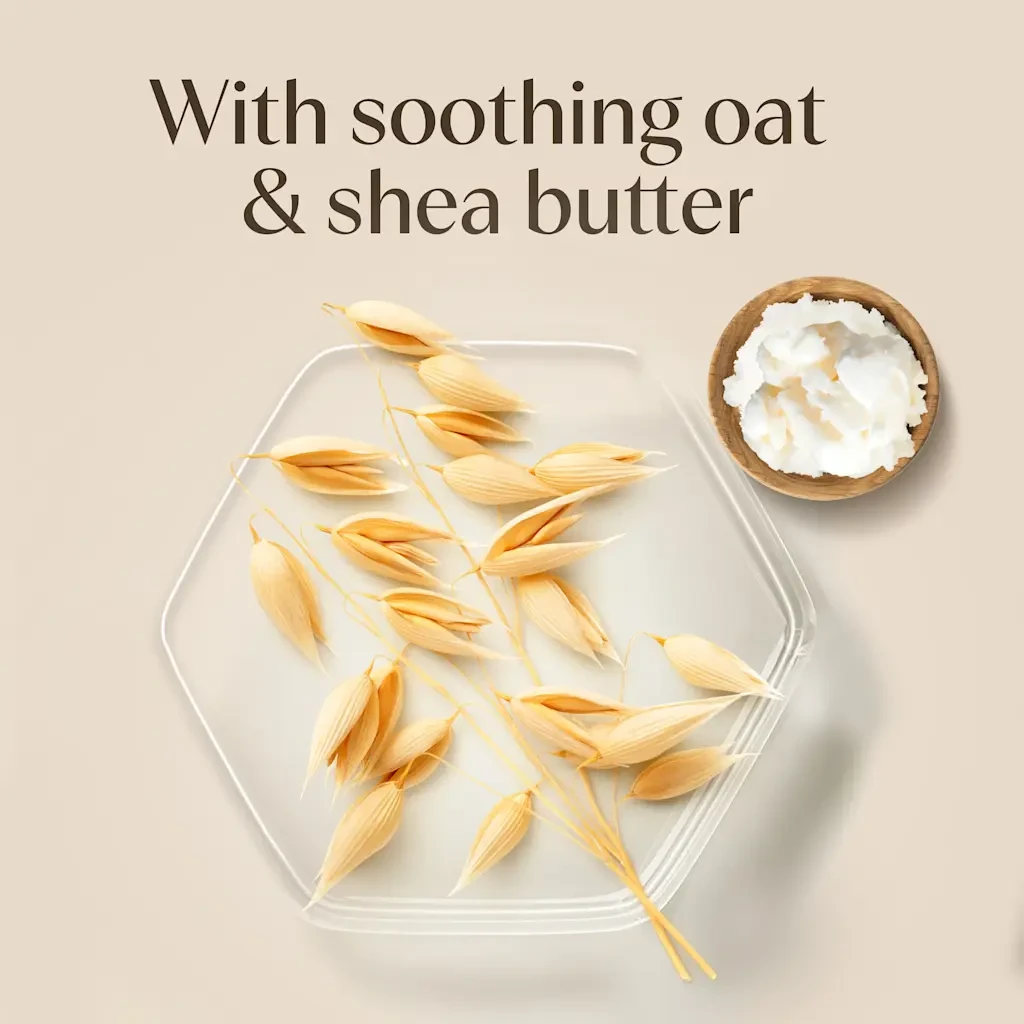 Aqua, Cetearyl Alcohol, Glycerin, Avena Sativa (Oat) Kernel Extract, Butyrospermum Parkii Butter, Behentrimonium Chloride, Cetrimonium Chloride, Cetyl Esters, Isopropyl Alcohol, Hydroxyethylcellulose, Polysorbate 60, Disodium Phosphate, Citric Acid, Sodium Phosphate, Sodium Benzoate, Potassium Sorbate, Parfum.
