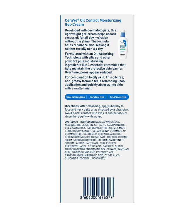 CeraVe Oil Control Moisturizing Gel-Cream is a lightweight moisturizer with oil-absorbing technology and hydrating ingredients that delivers all-day hydration and shine control with a non-greasy, matte finish.