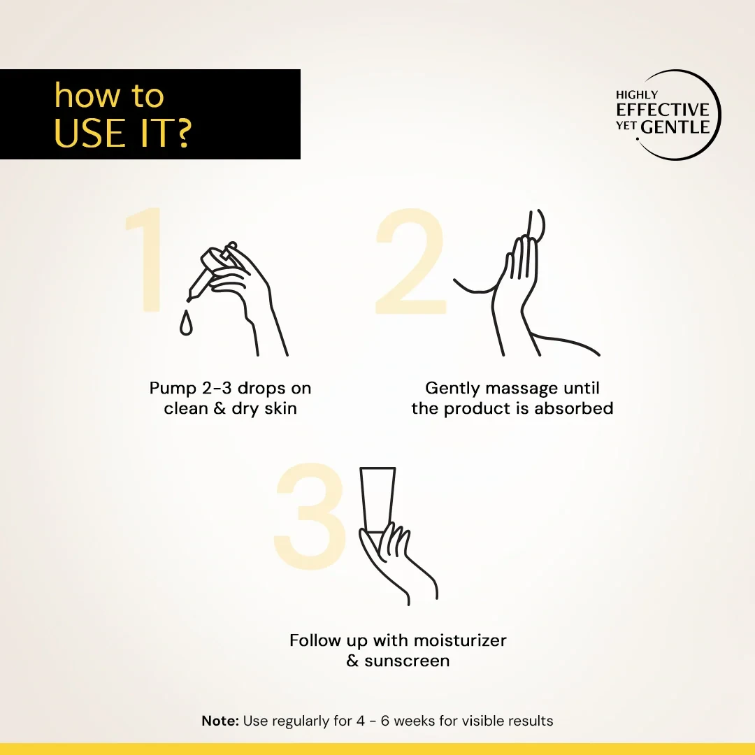 Note: If you are a first time user to the actives in the product, it is recommended to incorporate it slowly into your routine and gradually increase the frequency to everyday usage. For more details check the FAQs.