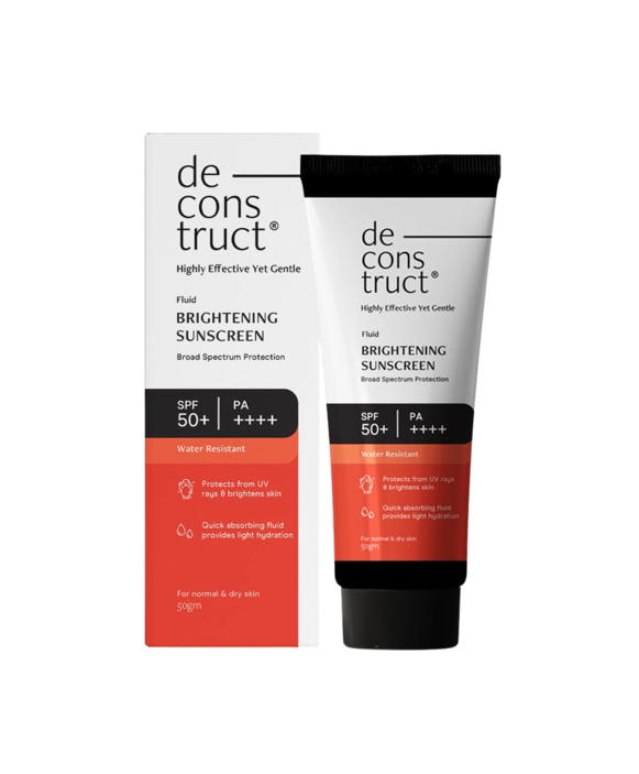 Tags: Deconstruct Fluid Brightening Sunscreen with spf 50+, Deconstruct Fluid Brightening Sunscreen, Brightening Sunscreen, Deconstruct sunscreen, Deconstruct Fluid Brightening Sunscreen with spf 50+ Prevents Tanning & Provides a Brightening effect 50gm, sunscreen
