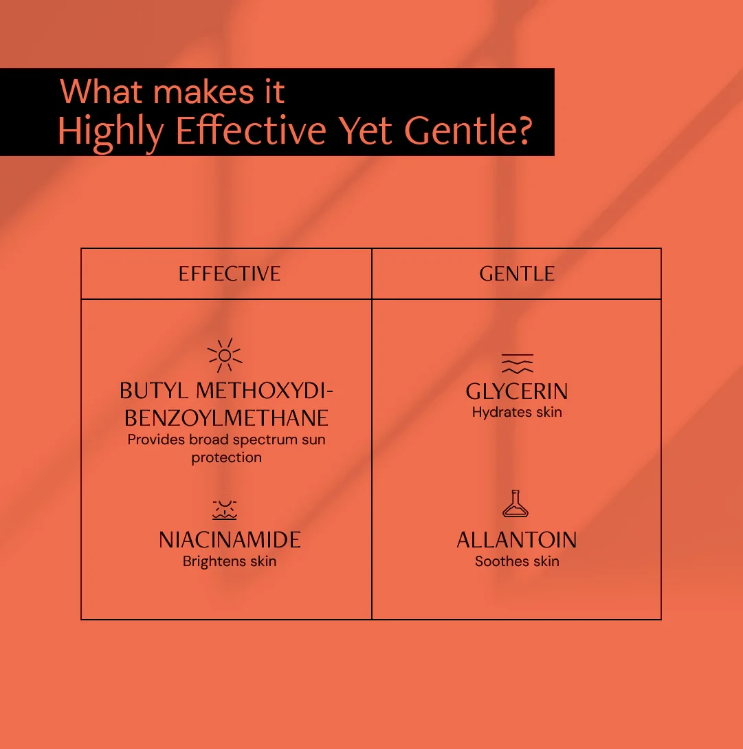 Butyl Methoxydibenzoylmethane : It protects against photoaging and tanning of the skin.