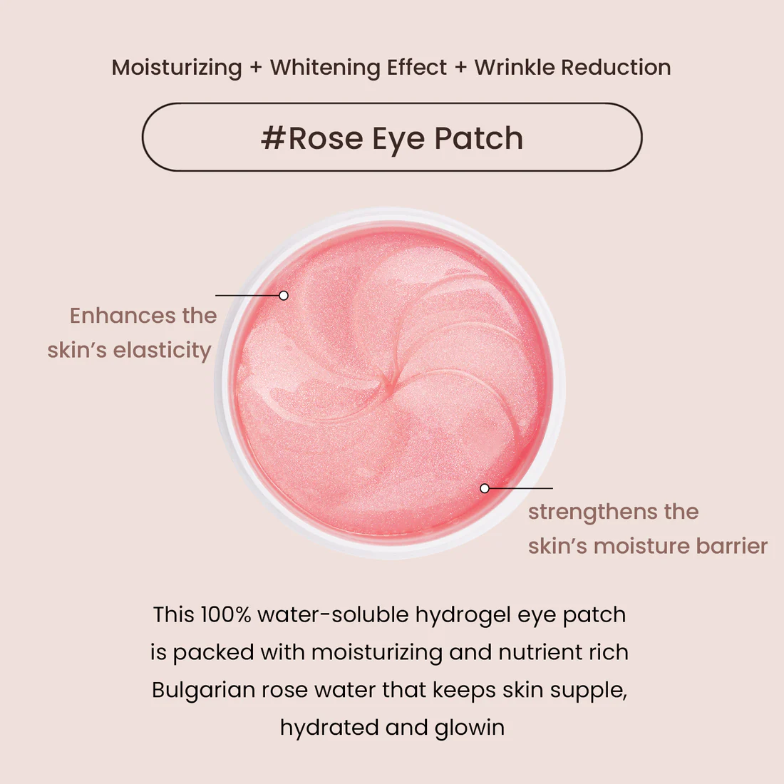 Our Bulgarian Rose Water Hydrogel Eye Patch provides hydration, brightening effects, and anti-wrinkle solutions