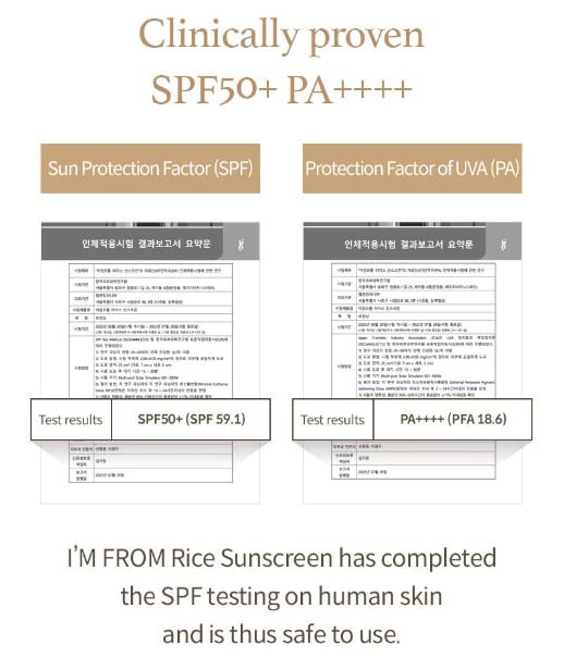 [Clinical Trials Completed] The I'm From Rice Sunscreen provides powerful broad spectrum protection for your skin. It has completed SPF testing on human skin with a proven result of SPF 50+ PA++++.