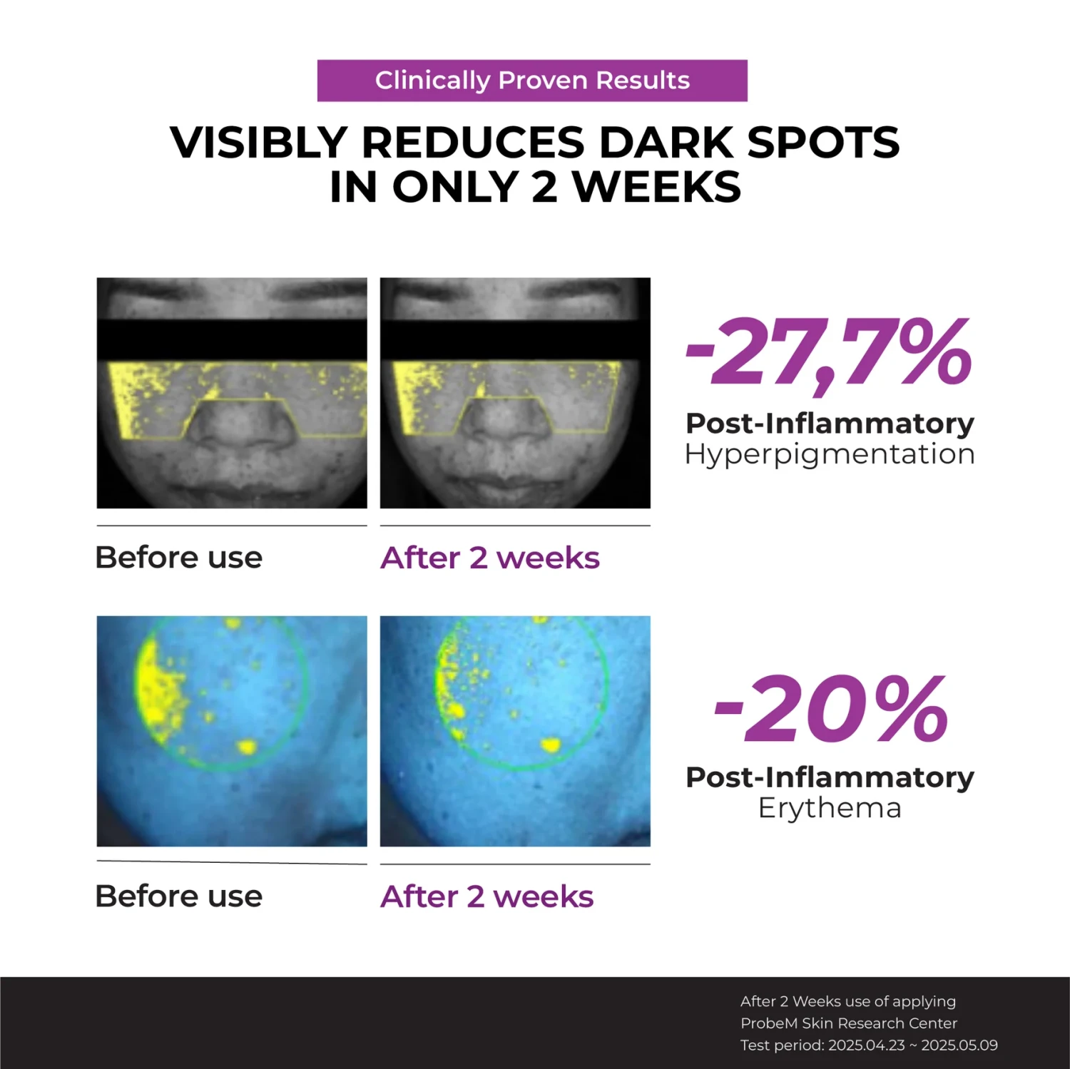 CLINICALLY PROVEN RESULTS: Dermatologically tested formula delivers -27.7% reduction in hyperpigmentation and -20% in redness after 2 weeks. 100% user satisfaction with smoother, clearer skin and more even skin tone.