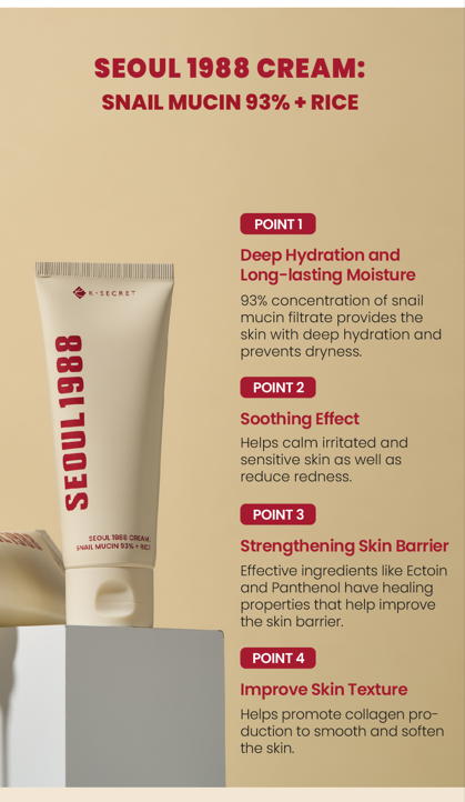 Tags: K-SECRET SEOUL 1988 Cream : Snail Mucin 93% + Rice, Snail Mucin 93% + Rice cream, SEOUL 1988 Cream Snail Mucin 93% + Rice, SEOUL 1988 Cream