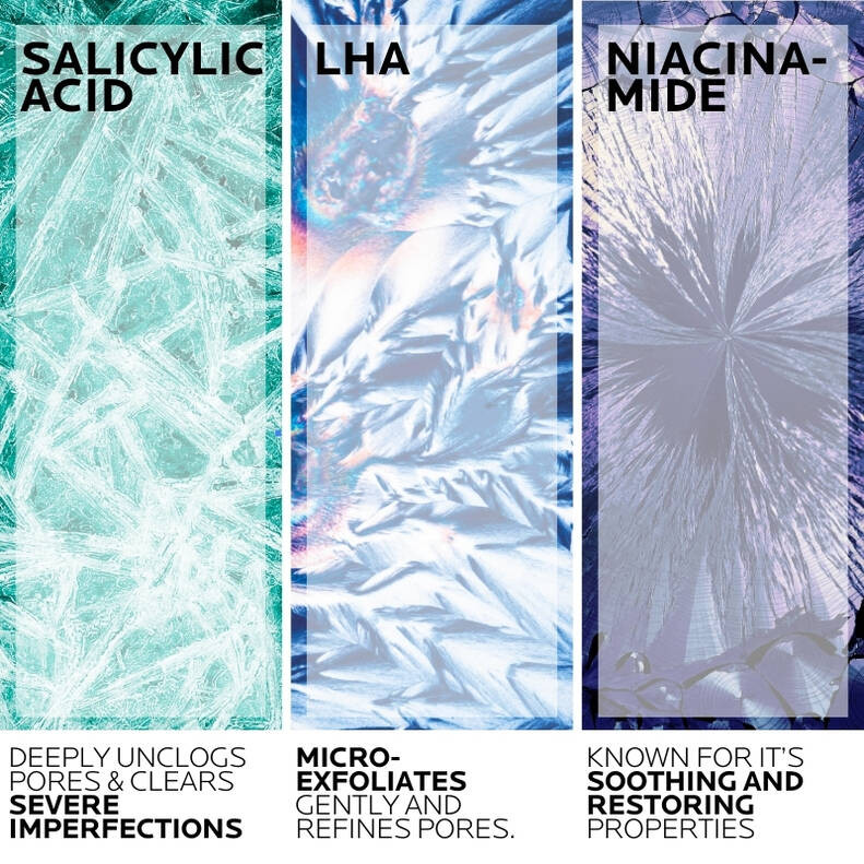 The scientifically proven formula with LHA and Salicylic Acid micro-exfoliates and purifies the skin helping to eliminate dead skin cells, deeply unclogs pores and reduces excess sebum visibly reducing the appearance of blackheads and pimples.