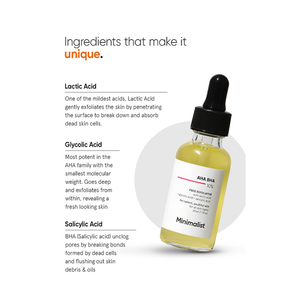 Tags: minimalist AHA BHA 10% Face exfoliator, Minimalist AHA BHA serum, minimalist exfoliator, minimalist serum