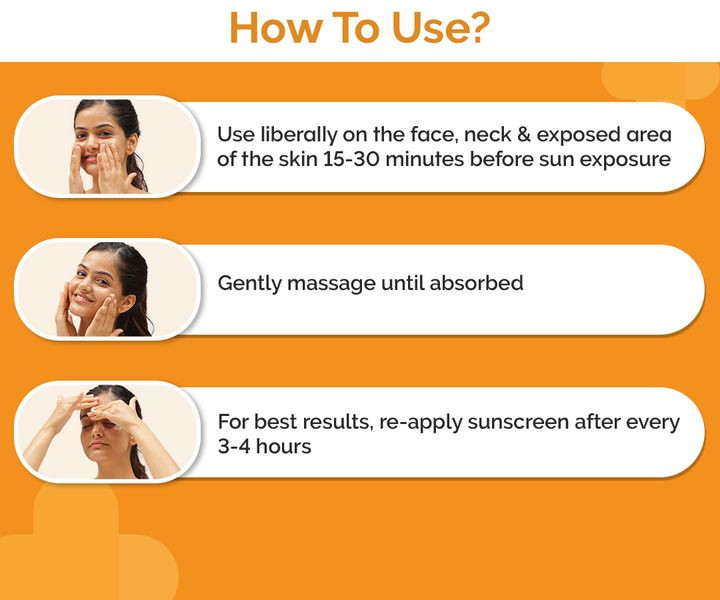 Use liberally on the face, neck, and exposed area of the skin 15-30 minutes before sun exposure