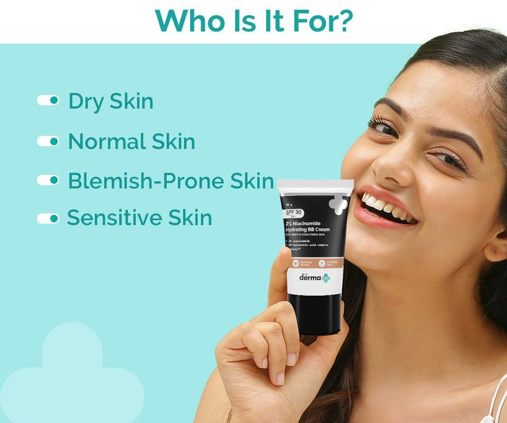 When makeup meets skincare, the results are sure to leave you spellbound! Make way for our 2% Niacinamide Hydrating BB Cream in Nude Shade with SPF 30, that effortlessly gives you perfect coverage and superbly smooth skin. Power packed with Niacinamide, it is not just any BB Cream - it evens skin tone and reduces pigmentation while fading dark spots. Ever heard of BB Cream doing all this? There’s more! The bb cream derma co of Aquaxyl™ & Hyaluronic Acid holds water molecules onto the surface of your skin to keep it hydrated and smooth. Say hello to flawless coverage, radiant glow, & SPF 30 sun protection - now in 3 delectable shades.