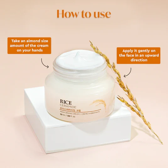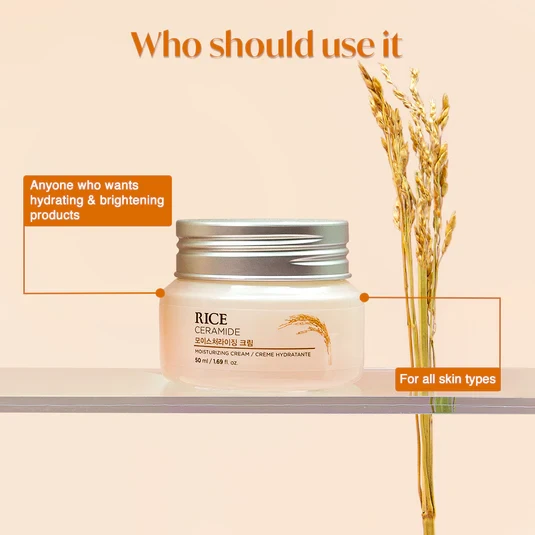 moisturizing cream packed with rice extracts, rice bran oil, nano ceramide