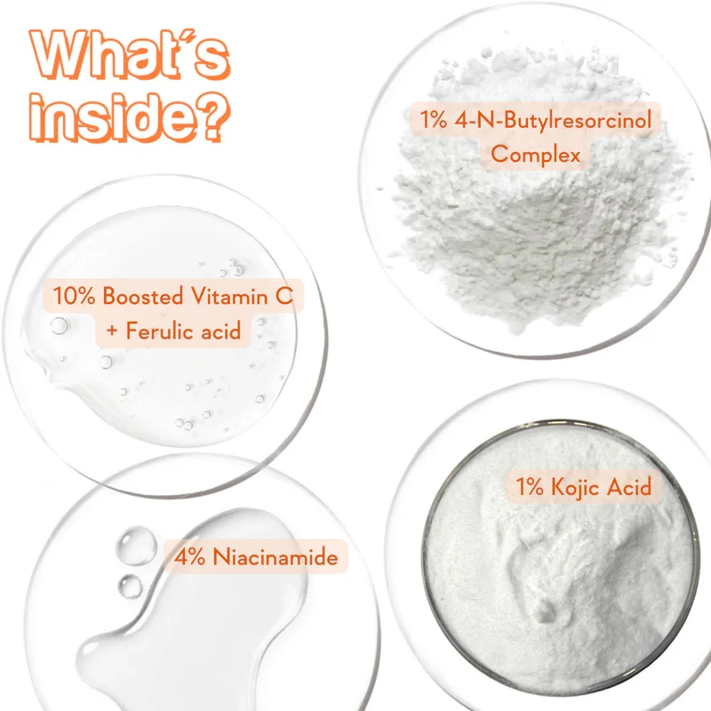SUPER BRIGHTENING FORMULA: 10% Boosted Vitamin C, 4% Niacinamide, 1% Kojic