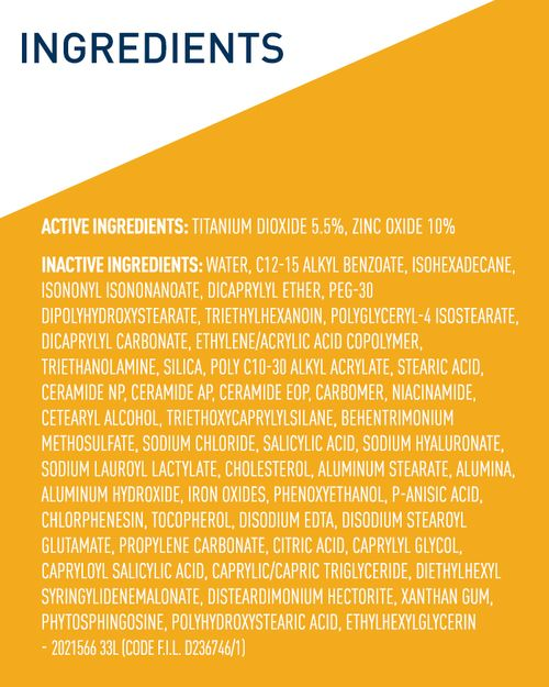 Water, C12-15 Alkyl Benzoate, Isohexadecane, Isononyl Isononanoate, Dicaprylyl Ether, Peg-30 Dipolyhydroxystearate, Triethylhexanoin, Polyglyceryl-4 Isostearate, Dicaprylyl Carbonate, Ethylene/Acrylic Acid Copolymer, Triethanolamine, Silica, Poly C10-30 Alkyl Acrylate, Stearic Acid, Ceramide NP, Ceramide AP, Ceramide EOP, Carbomer, Niacinamide, Cetearyl Alcohol, Triethoxycaprylylsilane, Behentrimonium Methosulfate, Sodium Chloride, Salicylic Acid, Sodium Hyaluronate, Sodium Lauroyl Lactylate, Cholesterol, Aluminum Stearate, Alumina, Aluminum Hydroxide, Iron Oxides, Phenoxyethanol, P-anisic Acid, Chlorphenesin, Tocopherol, Disodium EDTA, Disodium Stearoyl Glutamate, Propylene Carbonate, Citric Acid, Caprylyl Glycol, Capryloyl Salicylic Acid, Caprylic/Capric Triglyceride, Diethylhexyl Syringylidenemalonate, Disteardimonium Hectorite, Xanthan Gum, Phytosphingosine, Polyhydroxystearic Acid, Ethylhexylglycerin
