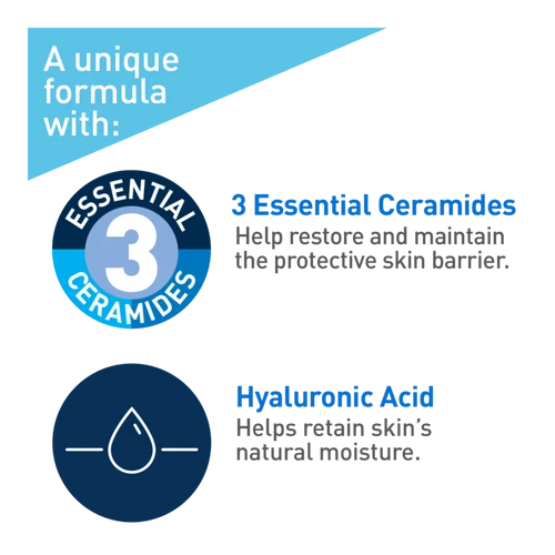 non-medicinal ingredients: aqua, glycerin, paraffinum liquidum, triethanolamine, glyceryl stearate, ammonium lactate, peg-100 stearate, cetearyl alcohol, cetyl alcohol, zea mays oil, ceramide np, ceramide ap, ceramide eop, carbomer, behentrimonium methosulfate, dimethicone, methylparaben, sodium lauroyl lactylate, cholecalciferol, cholesterol, disodium edta, propylparaben, hydrolyzed hyaluronic acid, phytosphingosine, xanthan.