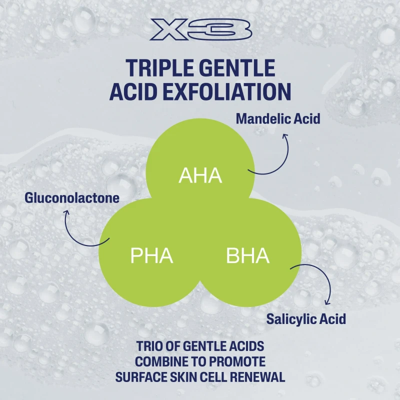 Each ingredient of our triple acid blend gently exfoliates to help promote surface skin cell renewal, for softer, smoother and brighter skin. But they each have their own extra benefits, too.