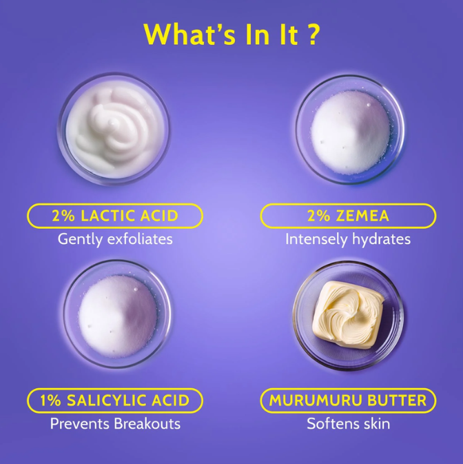 The Chemist At Play Exfoliating Body Wash is a gentle yet effective solution for dull, rough, or bumpy skin. Powered with 1% Salicylic Acid, 2% Lactic Acid, Ceramides, Vitamin E and Murumuru Butter, this body wash for women & men exfoliates dead skin, unclogs pores, fades tan and leaves your skin soft and hydrated. Whether you're dealing with strawberry legs, body acne, or sun-induced dullness, this tan removal body wash offers visible results with every wash.