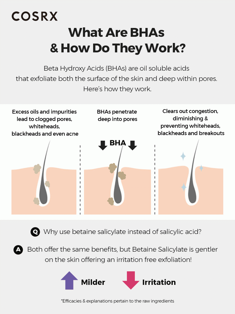 Cosrx Bha Blackhead Power Liquid Essence Clears clogged pores, Diminishes and prevents blackheads, Prevents breakouts & reduces marks from spots, Balances oil production, Improves skin tone and texture, Reduces marks from spots, Regulates oil production, Boosts radiance, Soothes.