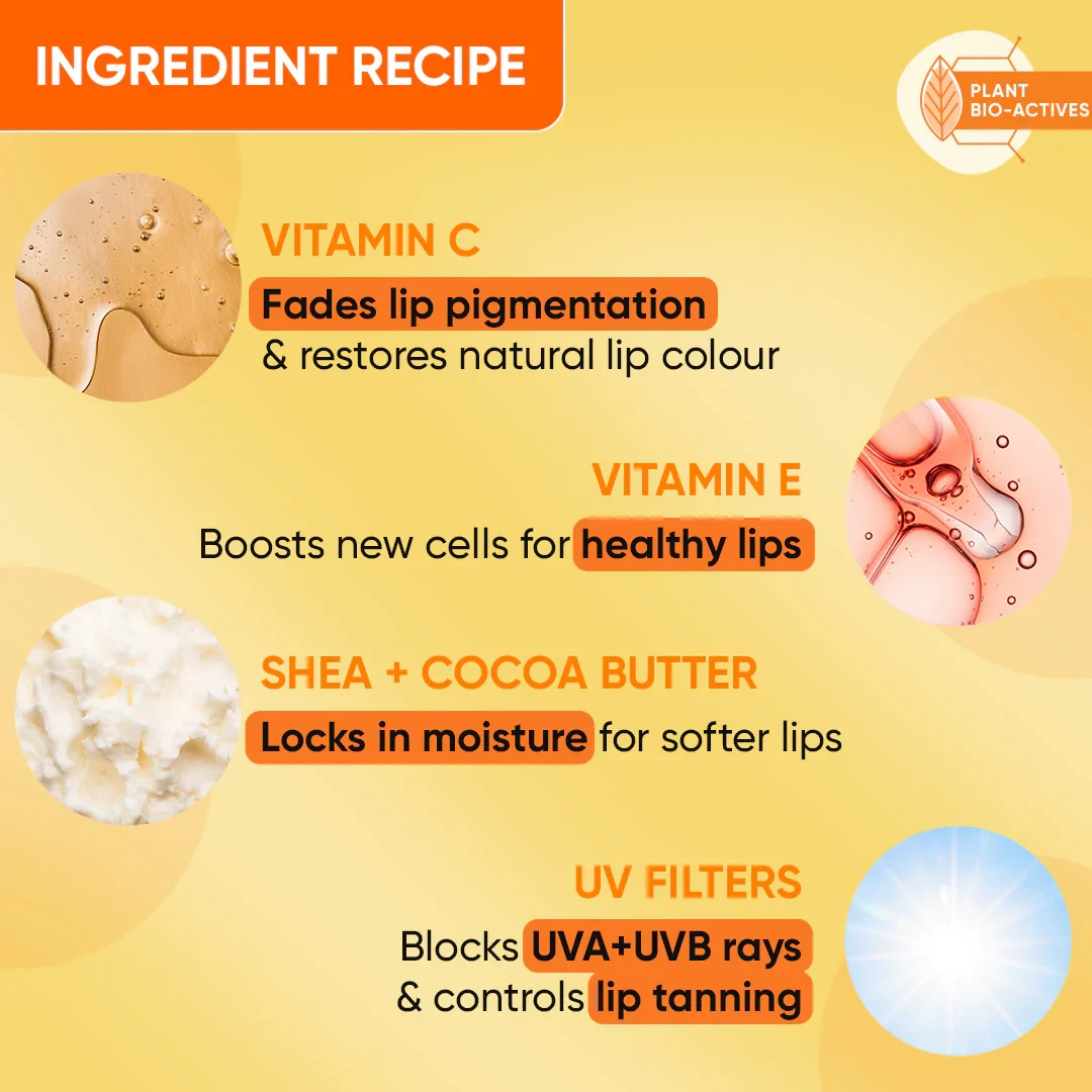 Ricinus Communis (Castor) Seed Oil, Octocrylene, Ethylhexyl Methoxycinnamate, Hydrogenated Soy Polyglycerides (and) C15-23 Alkanes, Sorbitan Olivate, Hydrogenated Polyisobutene, Butyrospermum Parkii (Shea) Butter, Color, Ascorbyl Palmitate, Tocopheryl Acetate, Theobroma Cacao (Cocoa) Seed Butter, Persea Gratissima (Avocado) Oil, Caprylic/Capric Triglyceride (and) Polyurethane-79, Flavour, Pentaerythrityl Tetra-Di-T-Butyl Hydroxyhydrocinnamate, Sucralose.