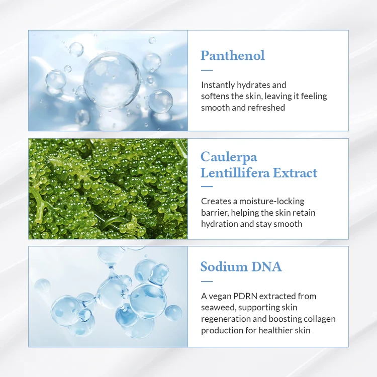 With Panthenol and Caulerpa Lentillifera Extract, it instantly rejuvenates and