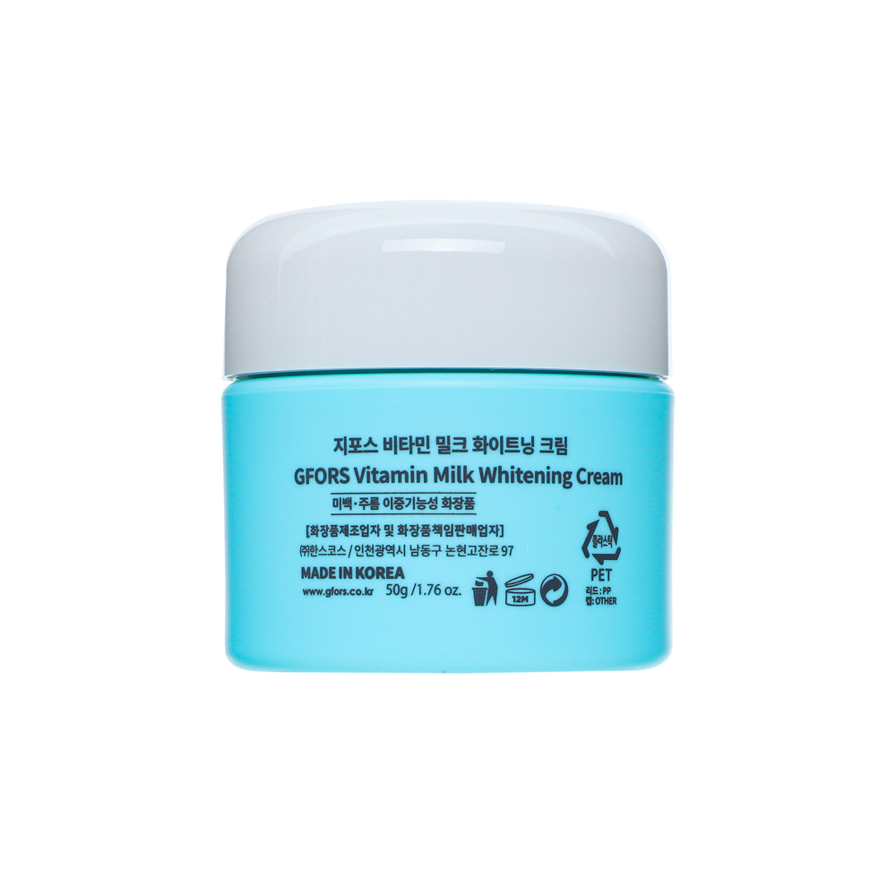 GFORS VITAMIN MILK WHITENING CREAM is a skin-brightening cream that actively helps improve the appearance of dull skin for a radiant complexion. Infused with vitamin extract and milk protein extract to brighten skin tone.
