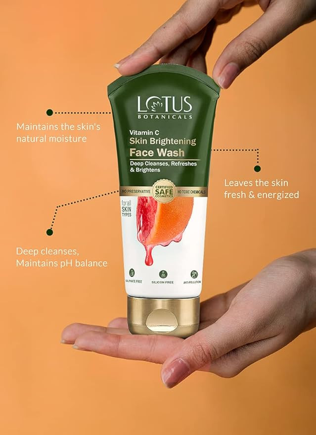 Cleansing is one of the most important skin care steps as it disburdens your skin from any harmful build-up. Vitamin C is a skincare sweetheart by virtue of its outstanding skin healing and nourishing properties. This powerful antioxidant is one of the dermatologist's most favourite ingredients to be used as a part of skincare. Gentle on your skin and tough on your impurities, our Lotus Vitamin C Skin Brightening Face Wash has natural powerful antioxidants that deeply cleanse your face without stripping the natural moisture of the skin. Free radicals that damage skin and cause wrinkles, age marks, and tiredness can be neutralized by using this Lotus Vitamin C face wash.. Brighter skin is aided by Lotus vitamin C face wash . Both men and women can use this Skin Brightening Face Wash. Collagen formation in skin is also increased and aids in balancing skin tone. Lotus Vitamin C face wash reveals a hydrated, refreshed soft and non-drying effect after washing face. Our Lotus Vitamin C skin brightening face wash is devoid of harsh chemicals or any other harmful additives, and therefore, it works like a charm on your skin to effectively maintain its pH balance and keep a number of skin problems at bay.