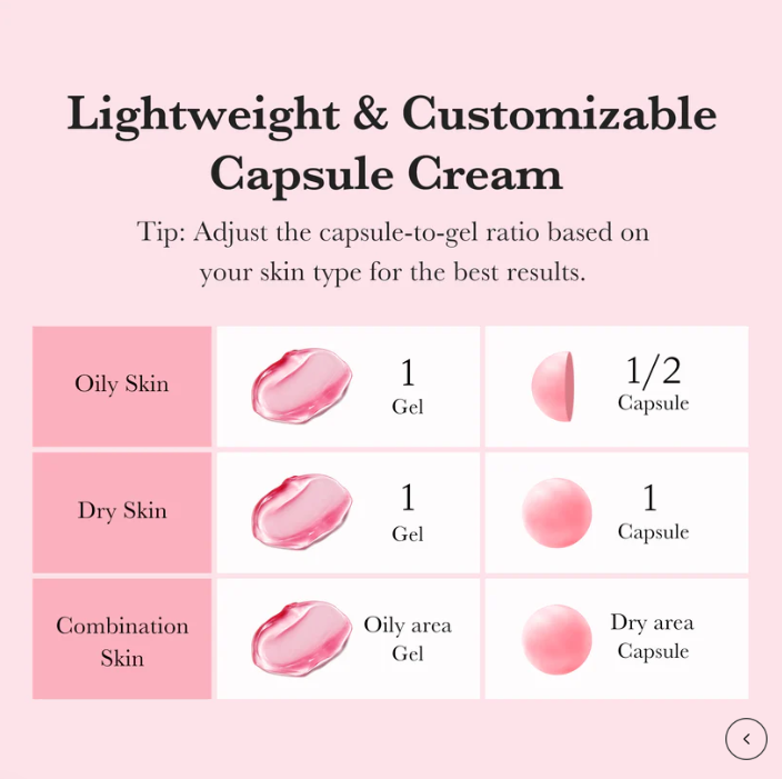 Mix the red TXA capsule and red gel in a suitable ratio based on your skin type. For a lighter feel, increase the ratio of the gel, while for more hydration and elasticity, increase the ratio of the capsule. Apply the mixture morning and evening to face and neck, after serum. Customize your routine based on skin needs!