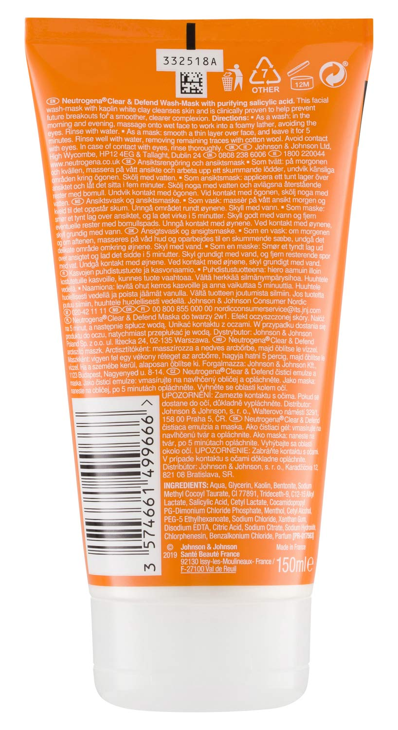 Neutrogena® Clear & Defend 2 in 1 Salicylic Acid & Clay Face Wash-Mask suitable for spot-prone skin provides a deep cleanse to prevent new breakouts.