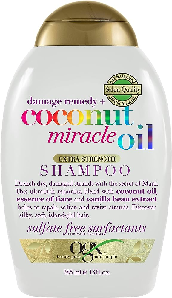 REPAIR & REVIVE YOUR STRANDS: This 13-fluid ounce bottle of OGX Extra Strength Damage Repair + Coconut Miracle Oil Shampoo helps repair and revive strands, turning thick, coarse hair into silky perfection