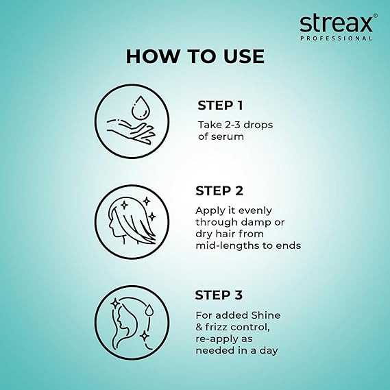 Streax Professional Vitariche gloss Hair Serum will give you that gorgeous, salon-fresh look. Its unique mix of ingredients including Macadamia Oil and Vitamin E helps nourish, smoothen and transform your hair strands making it frizz-free while shine enhancers give you shiny and sleek hair.