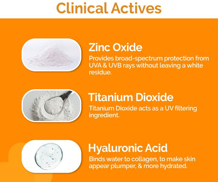 Crafted with 26% Zinc, 10% Titanium Dioxide & 1% Hyaluronic Acid for the ultimate protection from UVA & UVB and boost hydration as well.