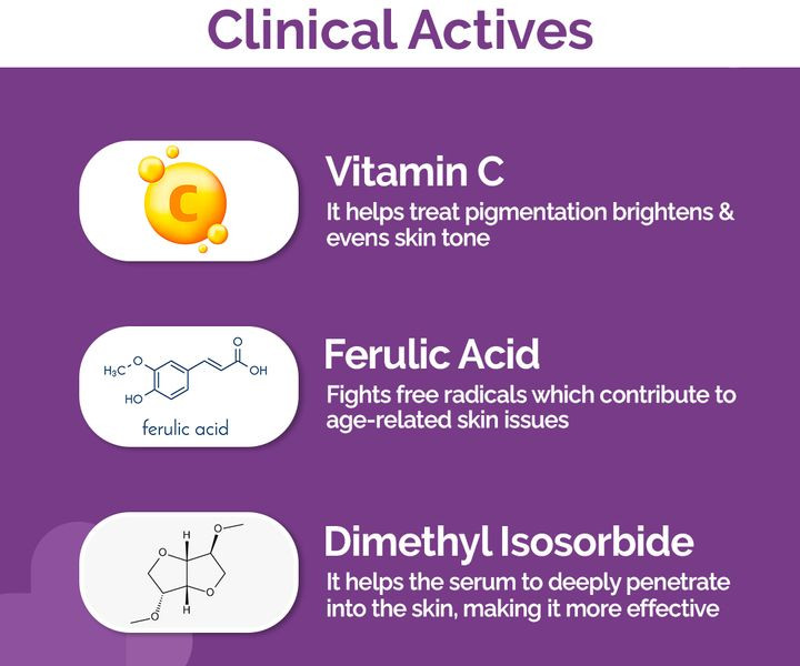 •Make way for the daily dose of Vitamin C, Multivitamin & Ferulic Acid that together boost skin radiance for the perfect, luminous skin!