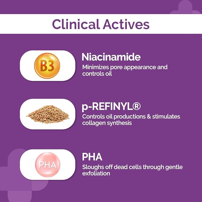 Aqua, Methylpropanediol, Gluconolactone, Niacinamide, Lens Esculenta Fruit Extract, Alpha-Glucan Oligosaccharide, Glycerin, Salicylic Acid, Glycolic Acid, Phenoxyethanol, Ethylhexylglycerin, Trisodium Ethylenediamine Disuccinate, Hydroxyethylcellulose, Xanthan Gum, Chondrus Crispus Extract & Sodium Hydroxide.